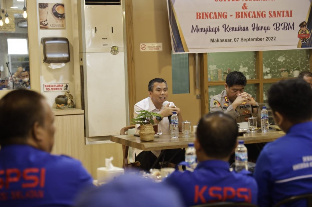 Hal itu diungkapkan General Manager Pelindo Regional 4 Makassar, Suhadi Hamid Aly, menanggapi “Bincang Santai Menyikapi Kenaikan Harga BBM” menghadirkan narasumber yaitu, Kapolres Pelabuhan Makassar AKBP Yudi Frianto, Kepala Badan Kesatuan Bangsa dan Politik Kota Makassar Zainal Ibrahim, dan Humas PT Pertamina Regional Sulawesi Laode Syarifuddin di Cafe Daily Makassar, Rabu (7/9/2022).