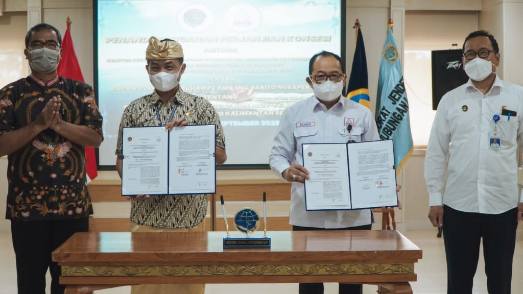 Kementerian Perhubungan melalui Kantor Kesyahbandaran dan Otoritas Pelabuhan (KSOP) Kelas I Banjarmasin melakukan Penandatanganan Perjanjian Konsesi dengan PT. Ambang Barito Nusapersada (PT. Ambapers) tentang Pengusahaan dan Pengelolaan Alur Pelayaran Ambang Sungai Barito di Kalimantan Selatan, di Ruang Sriwijaya Kantor Kementerian Perhubungan Jakarta, hari ini Selasa (20/9/2022).