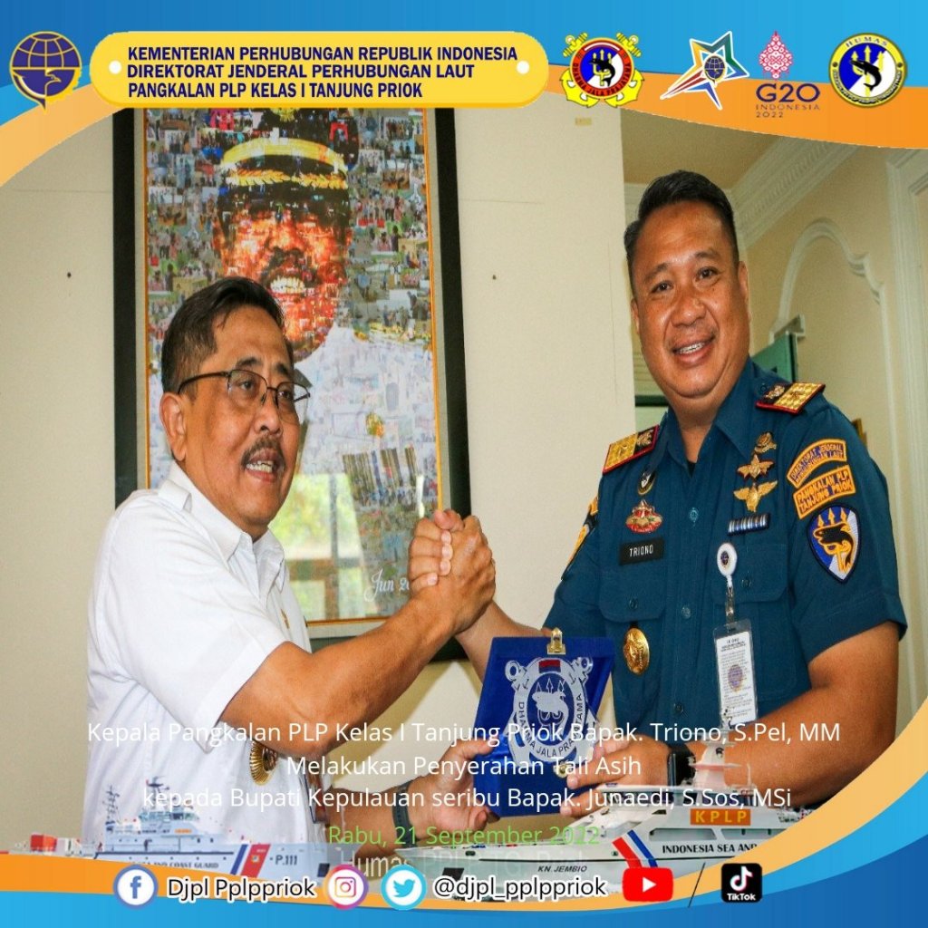 Pemberian piagam penghargaan dan cendramata tersebut dilakukan oleh Bupati Kabupaten Administrasi Kepulauan Seribu Junaedi kepada Kepala Pangkalan PLP Kelas I Tanjung Priok Triono, S.Pel, M.M di Kantor Bupati Kepulauan Seribu.