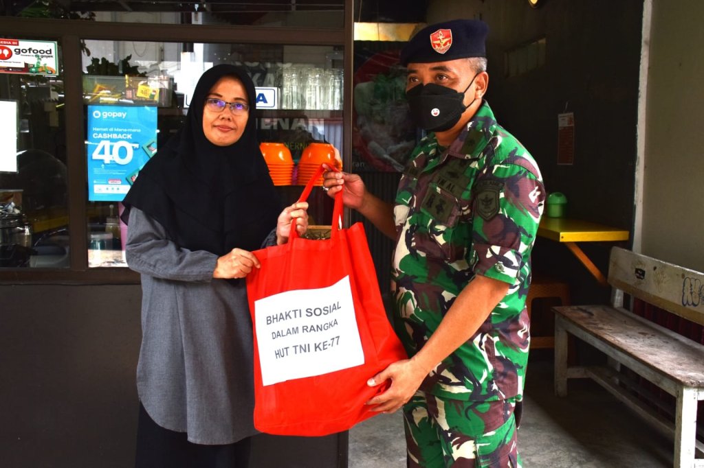 Dalam rangka Hari Ulang Tahun Ke-77 Tentara Nasional Indonesia (TNI) Tahun 2022 yang jatuh setiap tanggal 5 Oktober, Komando Lintas Laut Militer memberikan santunan kepada Warakawuri Kolinlamil di Komplek TNI AL Sukamana Jonggol dan Pondok Afi 2 Babelan Bekasi, Selasa (4/10/2022).