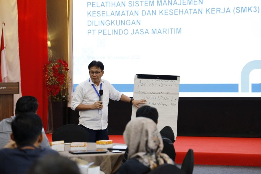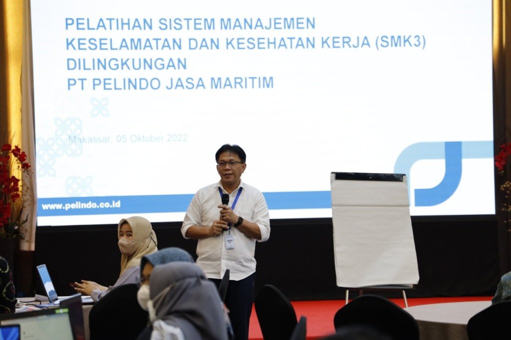 PT Pelindo Jasa Maritim, Subholding PT Pelabuhan Indonesia (Persero) atau Pelindo Group menggelar kegiatan pelatihan Sistem Manajemen Keselamatan dan Kesehatan Kerja (SMK3) di Makassar, Jumat (7/10/2022)