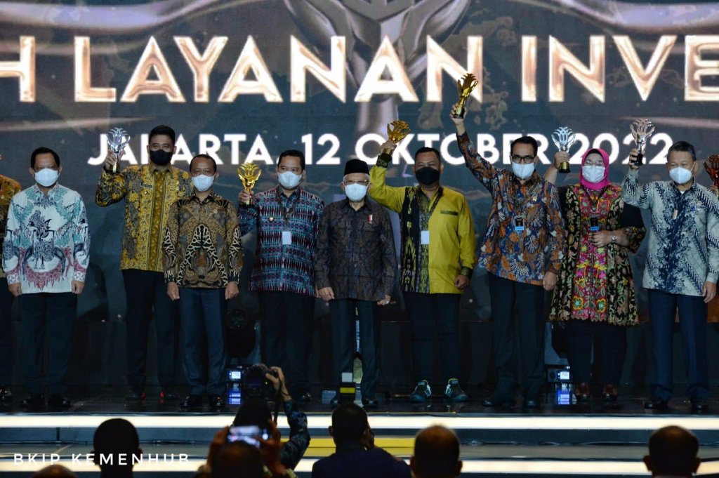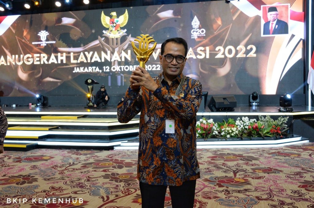 Menteri Perhubungan Budi Karya Sumadi menerima penghargaan tersebut, yang disaksikan langsung oleh Wakil Presiden RI Ma’ruf Amin dan Menteri Investasi/Kepala BKPM Bahlil Lahadalia, di Jakarta, Rabu (12/10/2022).