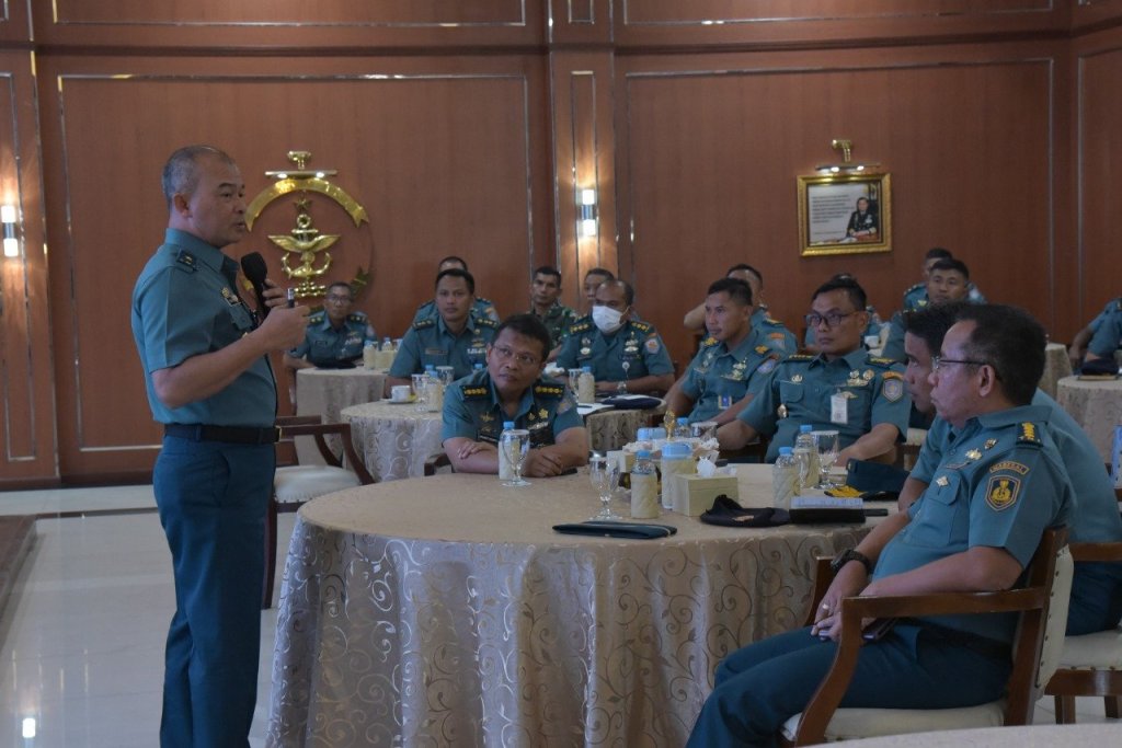 Perwira Korps Teknik jajaran Komando Lintas Laut Militer menerima pembekalan dari Kepala Dinas Material TNI Angkatan Laut Laksma TNI Widyantoro selaku pembina personel Korps Tehnik (corps chief) di Gedung Laut Nusantara, Mako Kolinlamil, Tanjung Priok, Jakarta Utara, Rabu (2/11/2022).