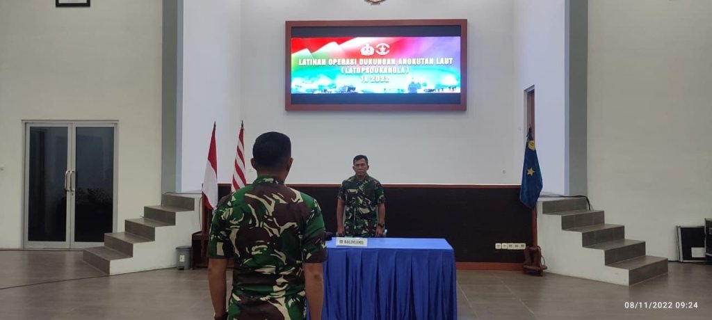 Inspektur Kolinlamil Laksma TNI Hardiko dalam hal ini mewakili Panglima Komando Lintas Laut Militer Laksda TNI Agus Hariadi membuka Latihan Operasi Dukungan Angkutan Laut (Latopsdukangla) tahun 2022 yang dilaksanakan di Gedung Laut Banda, Mako Satlinlamil 2, Surabaya, Selasa (8/11/2022).