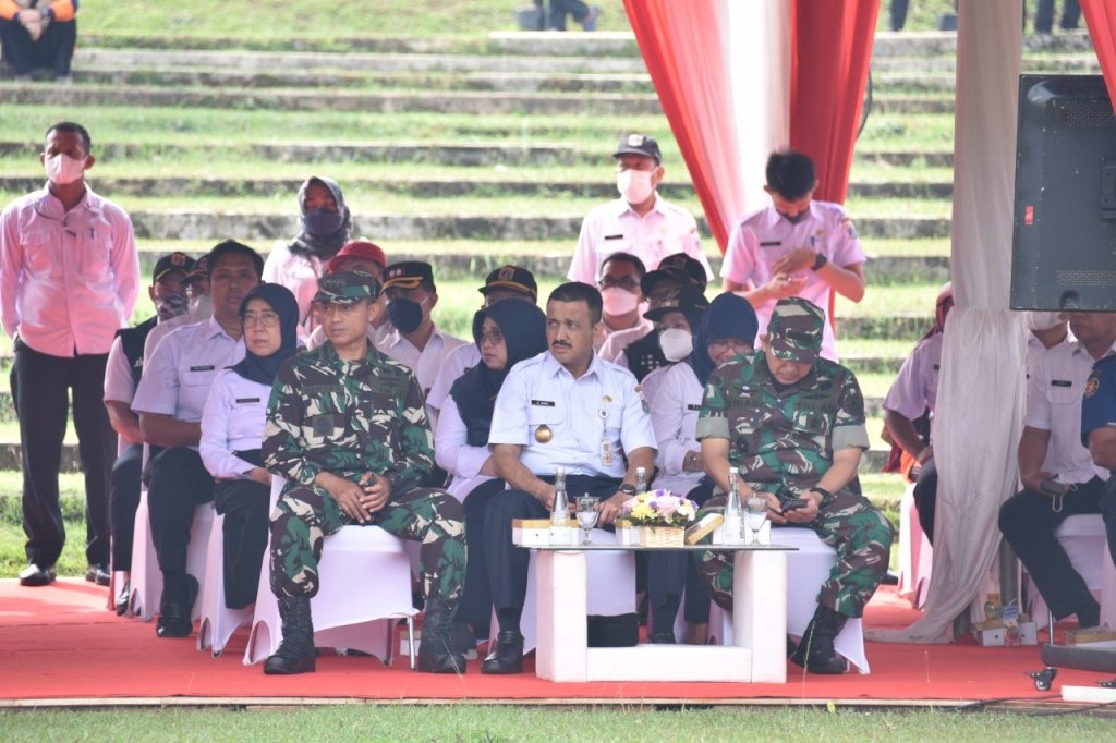 Sebelum menyampaikan sambutannya, Menko PMK berkesempatan untuk melakukan pengecekan kesiapan personel apel gabungan beserta peralatan dan sarana prasarana pendukung kegiatan penanggulangan bencana. Dalam sambutannya Menko PMK menyampaikan, posisi geografis Indonesia sangat berpotensi timbulnya bencana, oleh karena itu diperlukan adanya antisipasi dan penanggulangan bencana. Bencana yang terjadi memiliki spectrum luas dan berhimpitan dengan faktor ekonomi sehingga perlu pendekatan berbasis kesejahteraan.