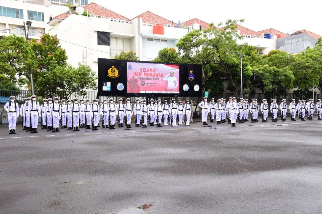 Pusat Hidro-Oseanografi TNI Angkatan Laut (Pushidrosal) memperingati hari Pahlawan Tahun 2022 di lapangan apel Markas Komando (Mako) Pushidrosal. Jalan Pantai Kuta V/I, Ancol Timur Jakarta Utara. Kamis (10/11/2022).
