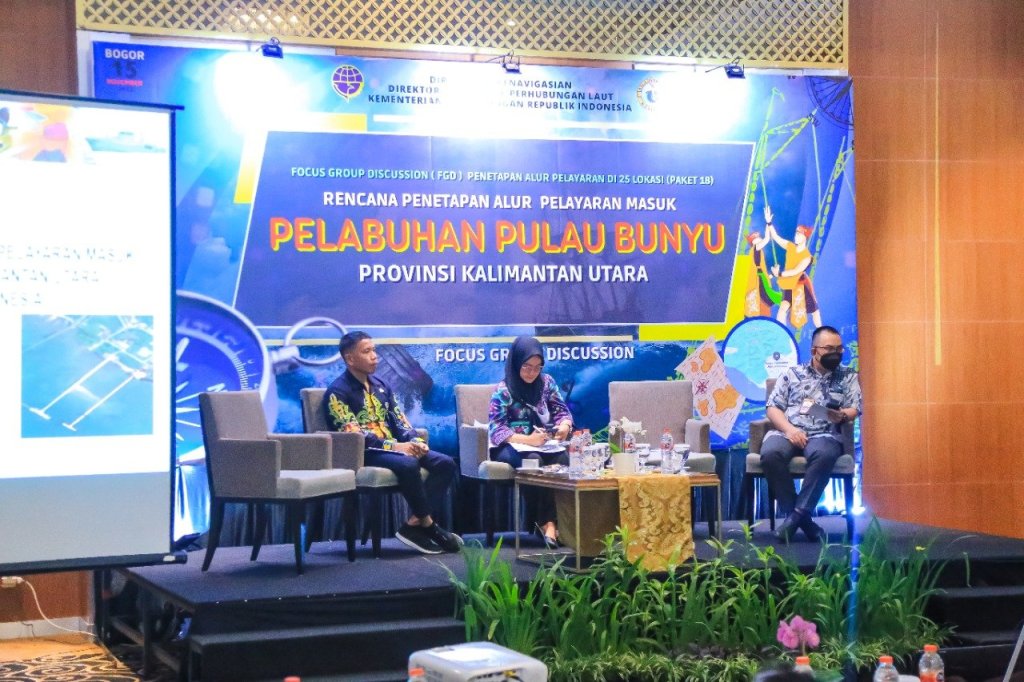 ”Dengan dasar itulah kami Direktorat Jenderal Perhubungan Laut melakukan survey hidro-oseanografi yang dilaksanakan oleh Distrik Navigasi Kelas III Tarakan di wilayah perairan Pelabuhan Pulau Bunyu tentunya agar pelabuhan ini dapat difungsikan secara efektif dan untuk kelancaran transportasi laut di Pelabuhan Pulau Bunyu,” ujar Kasubdit Penataan Alur dan Perlintasan Ihsan Hendrasta saat membacakan sambutan Direktur Kenavigasian dalam acara FGD rencana penetapan alur pelayaran masuk Pelabuhan Pulau Bunyu di Bogor, Selasa (15/11/2022).