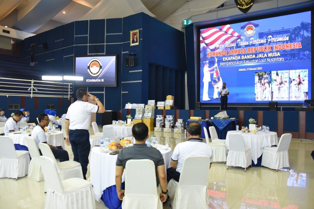 Di Hari Ulang Tahunnya yang pertama, Komando Armada RI menggelar acara tasyakuran yang dipimpin oleh Panglima Koarmada RI Laksdya TNI Heru Kusmanto di gedung O.B. Syaaf Koarmada RI, Gunung Sahari, Jakarta Pusat, Jumat (3/2/2023).