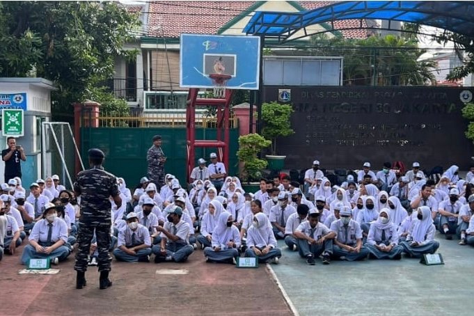 Melaksanakan salah satu tugasnya, Staf Potensi Maritim Kolinlamil mengirimkan personelnya untuk memimpin upacara bendera sekaligus memberikan sosialisasi Wawasan Kebangsaan dan Bela Negara masing-masing kepada siswa-siswi SMA Negeri 15 dan SMA Negeri 80 yang keduanya berlokasi di wilayah Jakarta Utara, Senin (6/2/2023).