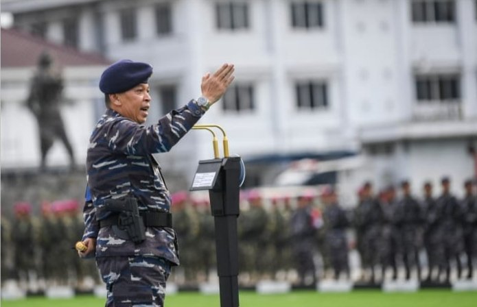 Dalam rangka memastikan kesiapan prajurit dan memompa semangat prajurit untuk berlatih, Panglima Komando Lintas Laut Militer Laksda TNI Yayan Sofiyan menyampaikan Briefing Komando di lapangan Moeljono Silam, Mako Kolinlamil, Tanjung Priok, Jakarta Utara, Senin (13/2/2023).