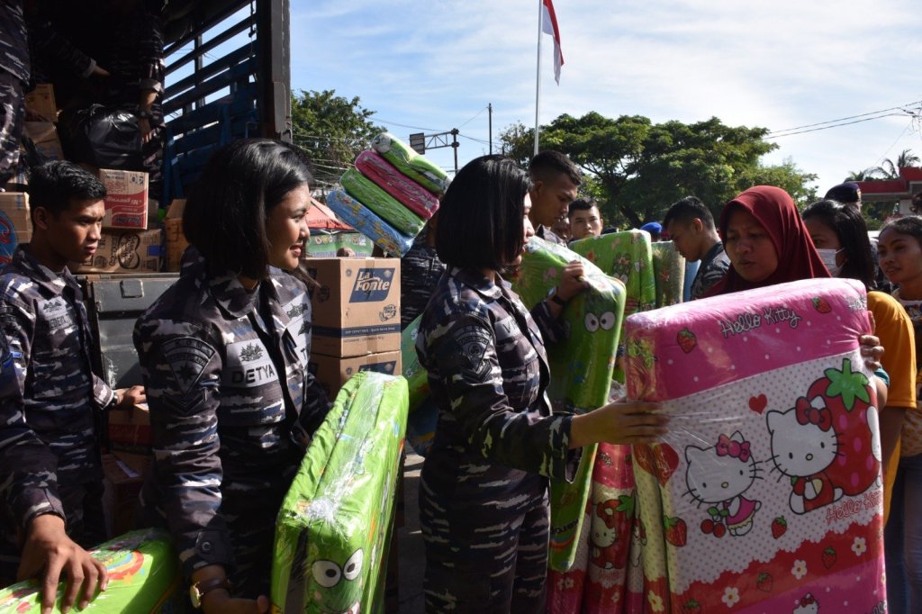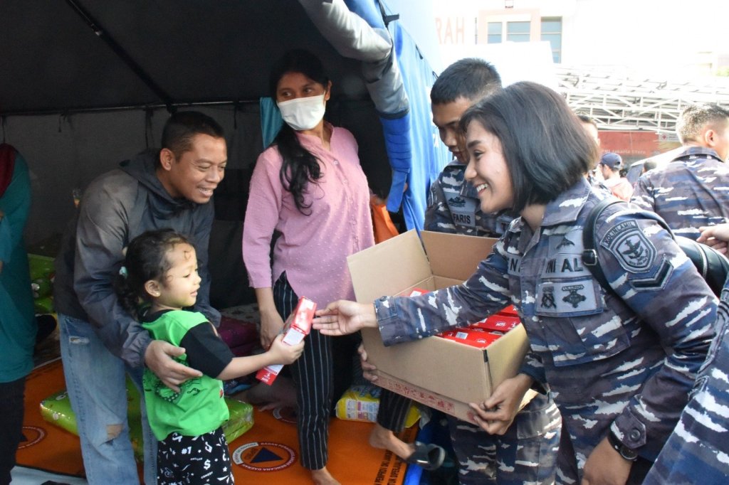 Selasa (7/3/2023) melalui Komando Lintas Laut Militer (Kolinlamil), TNI AL menyerahkan langsung bantuan berupa bahan makanan, dan pakaian layak pakai di posko pengungsian.