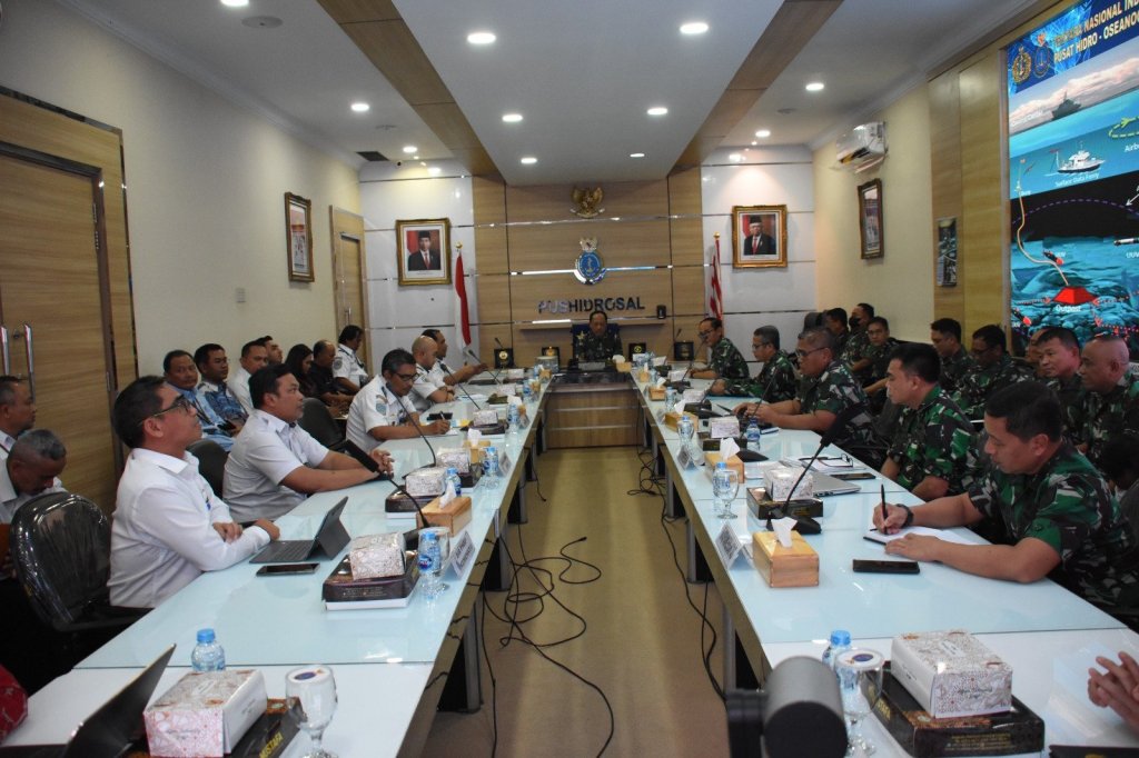 Rapat yang dipimpin Danpushidrosal Laksamana Madya TNI Nurhidayat tersebut dihadiri dari perwakilan Kementerian/Lembaga dan para stakeholder bidang Survei dan Pemetaan, di antaranya Direktur PNBP Kemenkeu, Dirjen PRL KKP, Direktur Navigasi Hubla Kemenhub, Kadisnav Tanjung Priok, Direktur Operasi dan Komersial Pelindo, Kapus PKLP BIG dan pejabat terkait di Mako Pushidrosal.