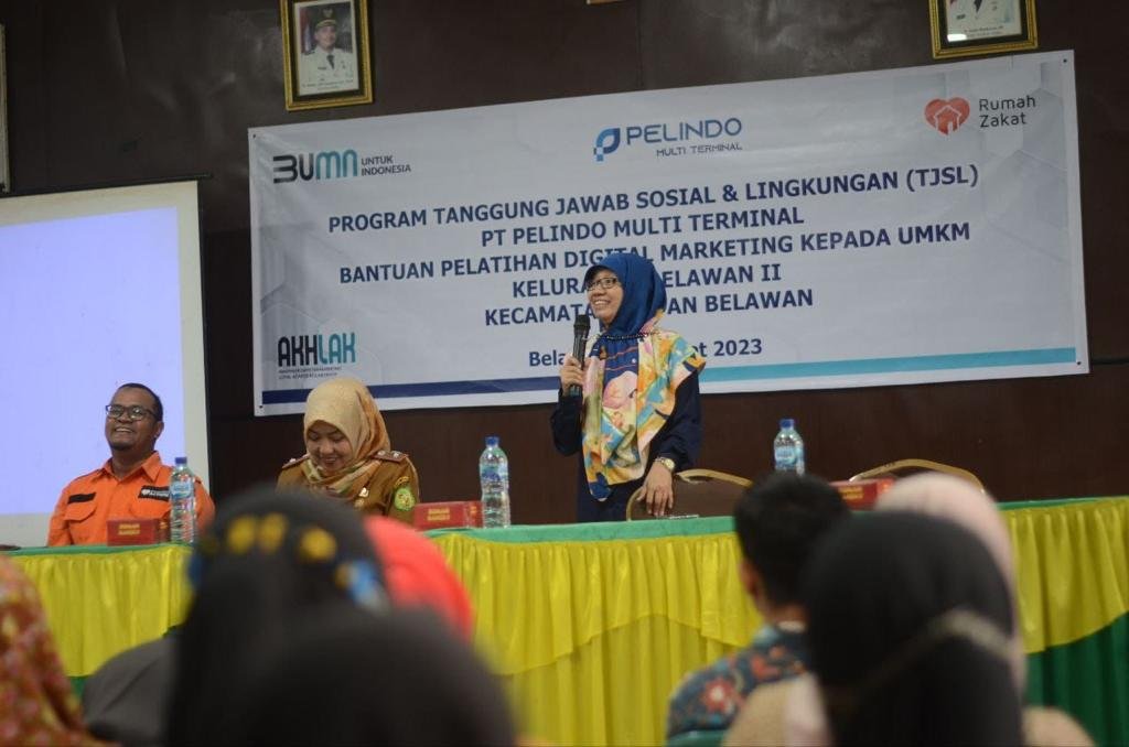 Salah satu wujud nyata program Tanggung Jawab Sosial dan Lingkungan (TJSL) terhadap masyarakat di wilayah kerjanya, bersamaan dengan menyambut kedatangan bulan suci Ramadhan 1444 H, PT Subholding Multi Terminal Pelindo (SPMT) berkolaborasi dengan Rumah Zakat menggelar Pelatihan Digital Marketing kepada UMKM Kelurahan Belawan II Kecamatan Medan Belawan’ di Kantor Lurah Belawan II, Jumat (31/3/2023).