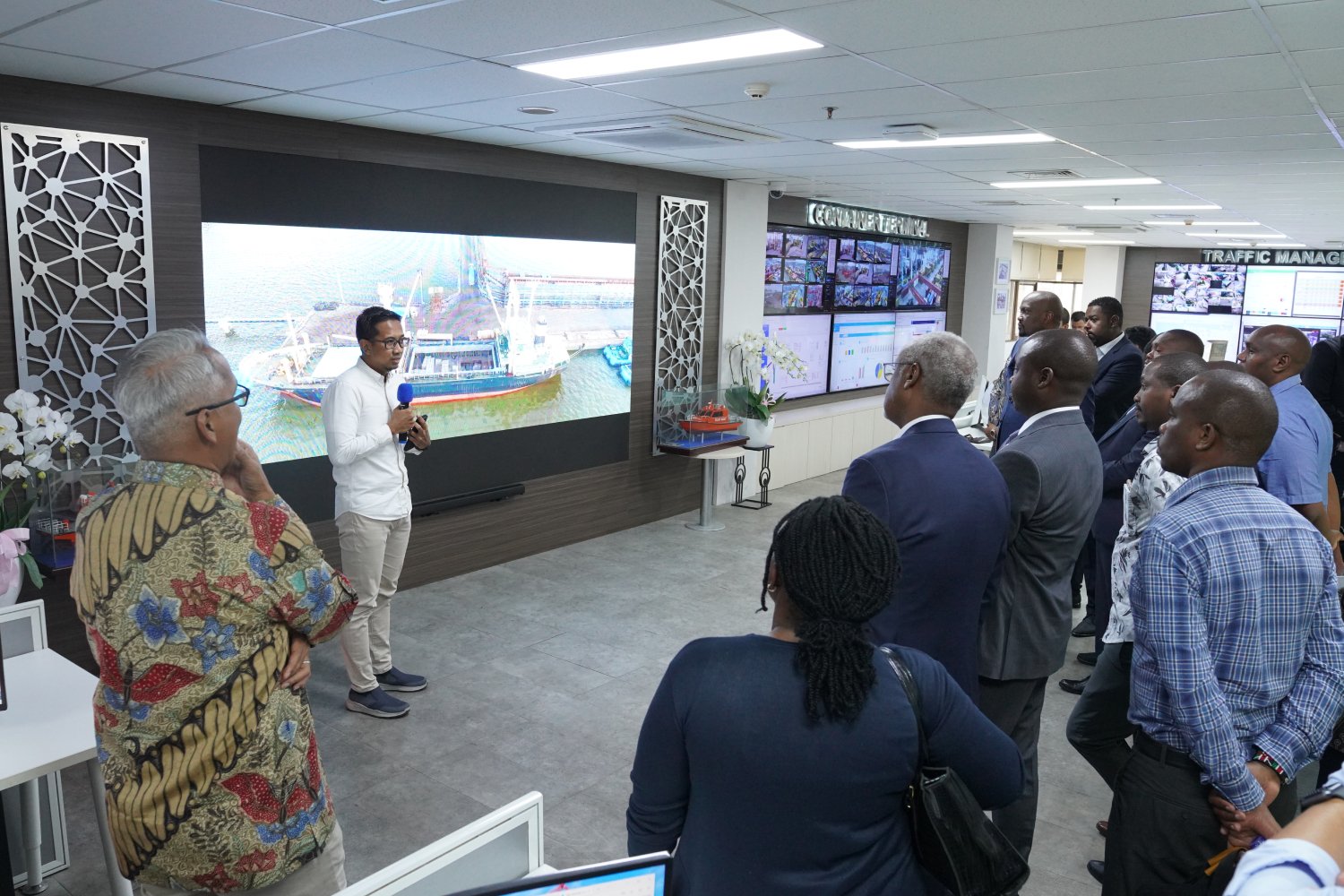 IPC Terminal Petikemas/IPC TPK menerima kunjungan kerja Kementerian Koordinator Maritim & Investasi dan delegasi Kenya di ruang Planning dan Control Pelabuhan Tanjung Priok dalam rangka menggali potensi Investasi dengan PT Pelabuhan Indonesia (Persero).