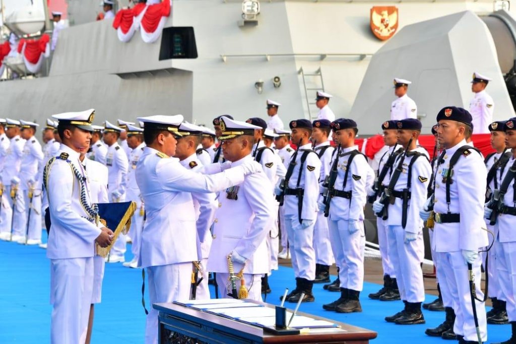 Kepala Staf Angkatan Laut (Kasal) Laksamana TNI Muhammad Ali memimpin pelaksanaan Shipnaming dua Kapal Cepat Rudal (KCR) 60 Meter, produksi dalam negeri PT. PAL Indonesia, yaitu KRI Kapak-625 dan KRI Panah-626, di Surabaya, Rabu (17/5/2023). Penamaan keduanya dibacakan oleh Ketua Umum Jalasenastri Ny. Fera Muhammad Ali dan ditandai dengan pemecahan kendi di kedua KRI.