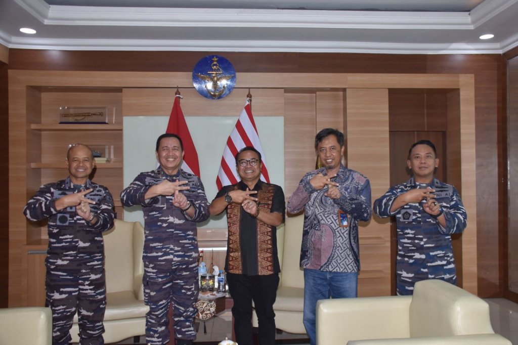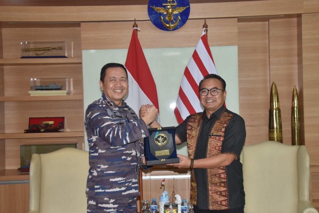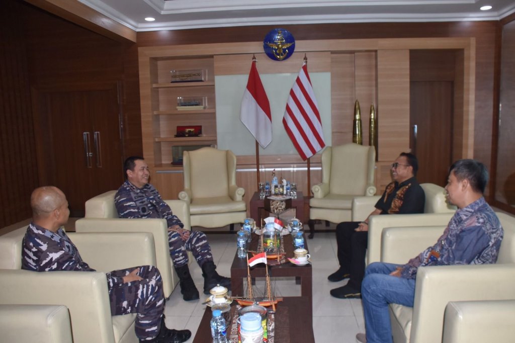 Panglima Komando Lintas Laut Militer Laksda TNI Edwin, S.H., M.Han, M.H. menerima kunjungan dari General Manager PT Pelindo (Persero) Regional 2 Tanjung Priok Adi Sugiri di Mako Kolinlamil, Tanjung Priok, Jakarta Utara, Jumat (26/5/2023).