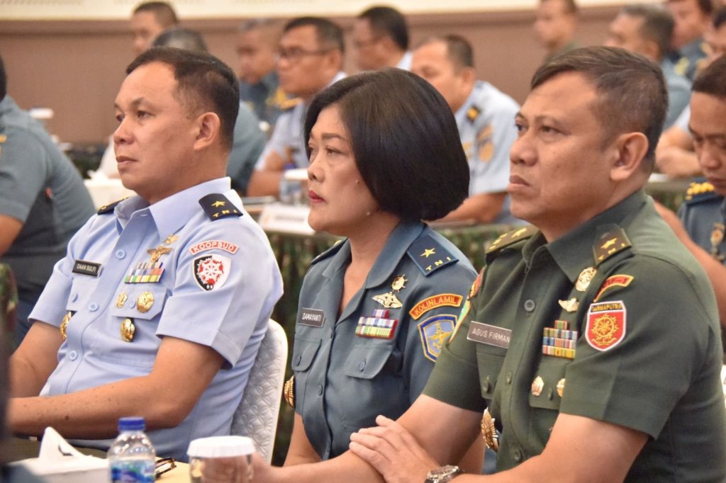 Inspektur Komando Lintas Laut Militer Laksma TNI Damayanti mewakili Panglima Komando Lintas Laut Militer Laksda TNI Edwin, S.H., M.Han, M.H. menghadiri acara Taklimat Akhir Audit Kinerja Inspektorat Jenderal TNI periode II tahun 2023 di lingkungan Unit Organisasi (UO) TNI AD, TNI AL, TNI AU serta Ko/Sat TNI wilayah DKI-A dan DKI-B yang dipimpin oleh Inspektur Jenderal TNI Letjen TNI (Mar) Bambang Suswantono di Aula Dharmagati Ksatria Jaya Mapusbekangad, Kramat Jati, Jakarta Timur, Rabu (31/5/2023).