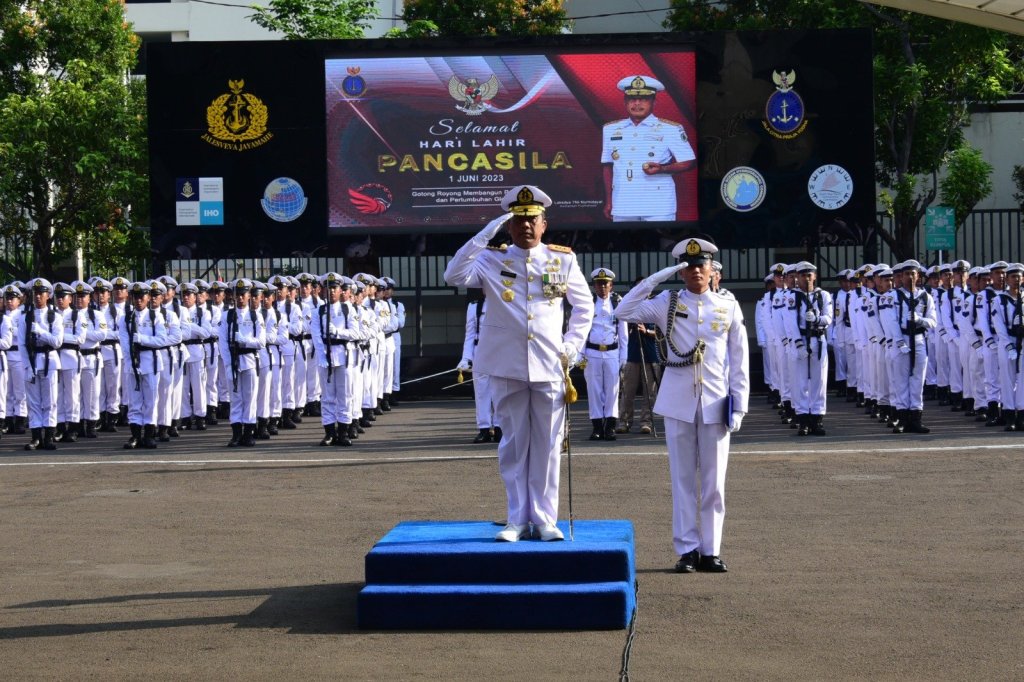 Pusat Hidro-Oseanografi TNI Angkatan Laut (Pushidrosal) memperingati Hari Lahir Pancasila tahun 2023 dengan upacara bertempat di lapangan apel Pushidrosal, Jakarta Utara, hari ini Kamis (1/6/2023).