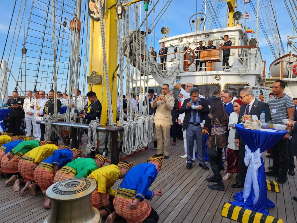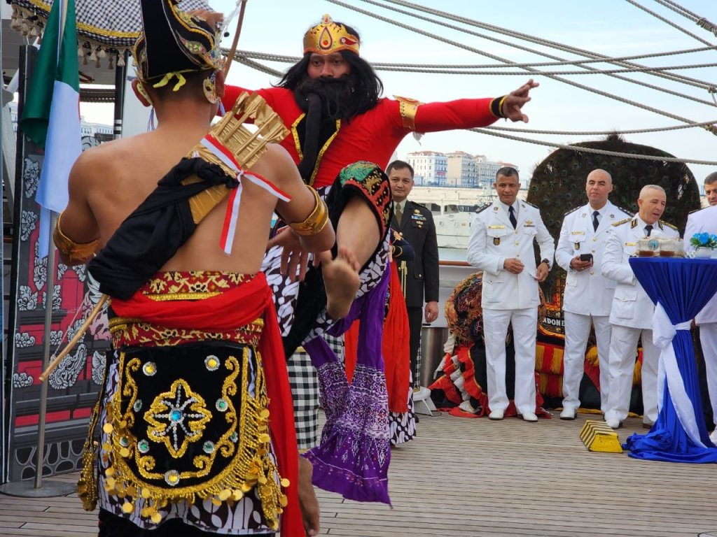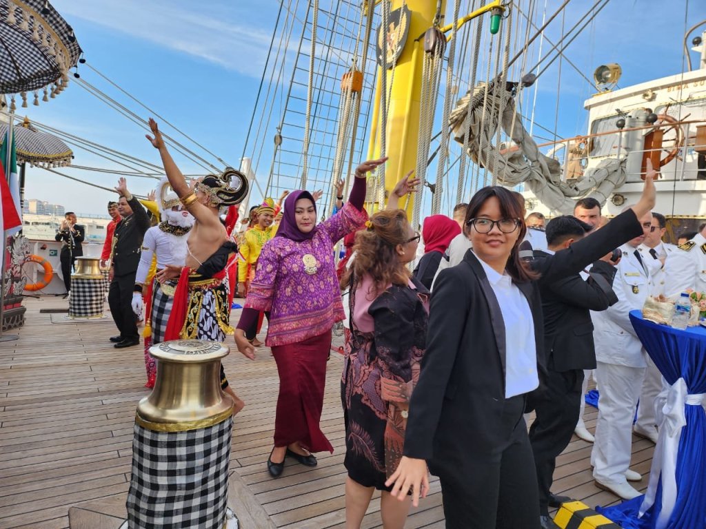 Selain tari – tarian, para tamu undangan juga dimanjakan dengan kelezatan berbagai macam hidangan khas Indonesia yang diolah oleh juru masak kapal latih layar tiang tinggi kebanggaan Indonesia ini seperti sate ayam, bakso, nasi goreng, mie goreng, dan sajian makanan nusantara lainnya. Tampak antusiasme para tamu undangan yang larut dalam acara yang penuh persahabatan tersebut.