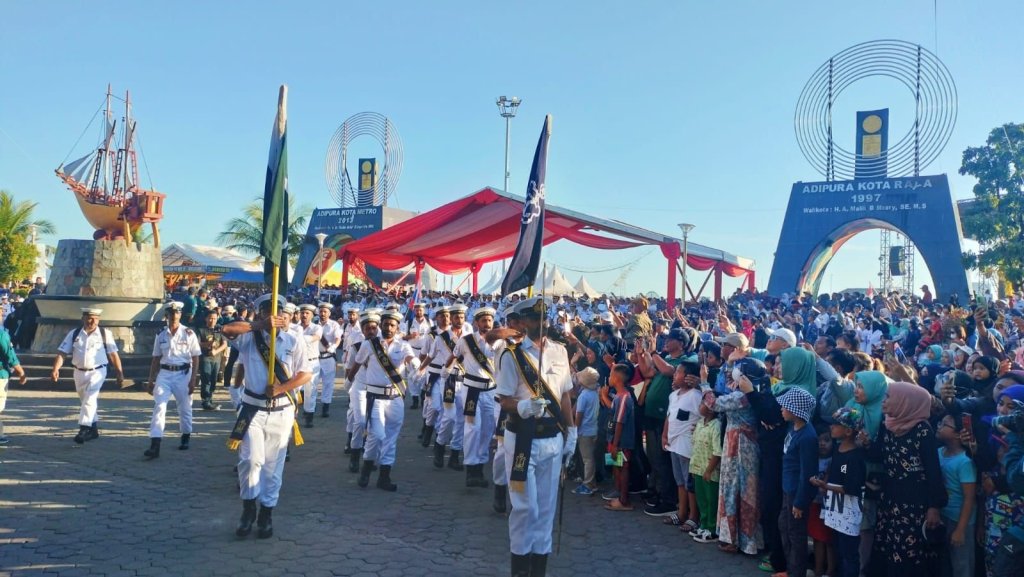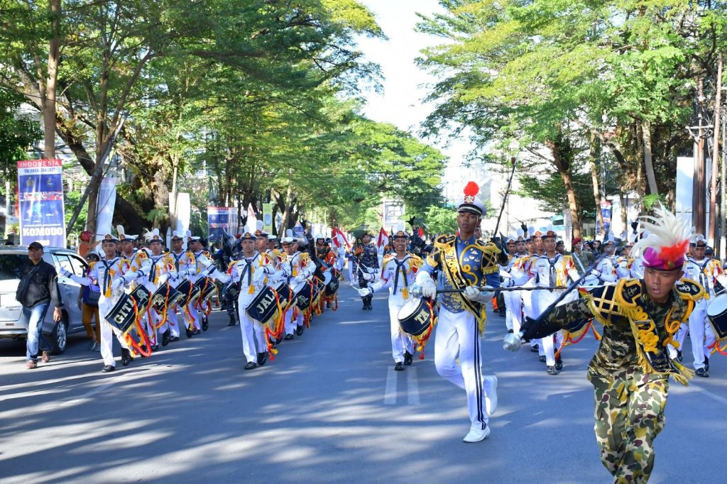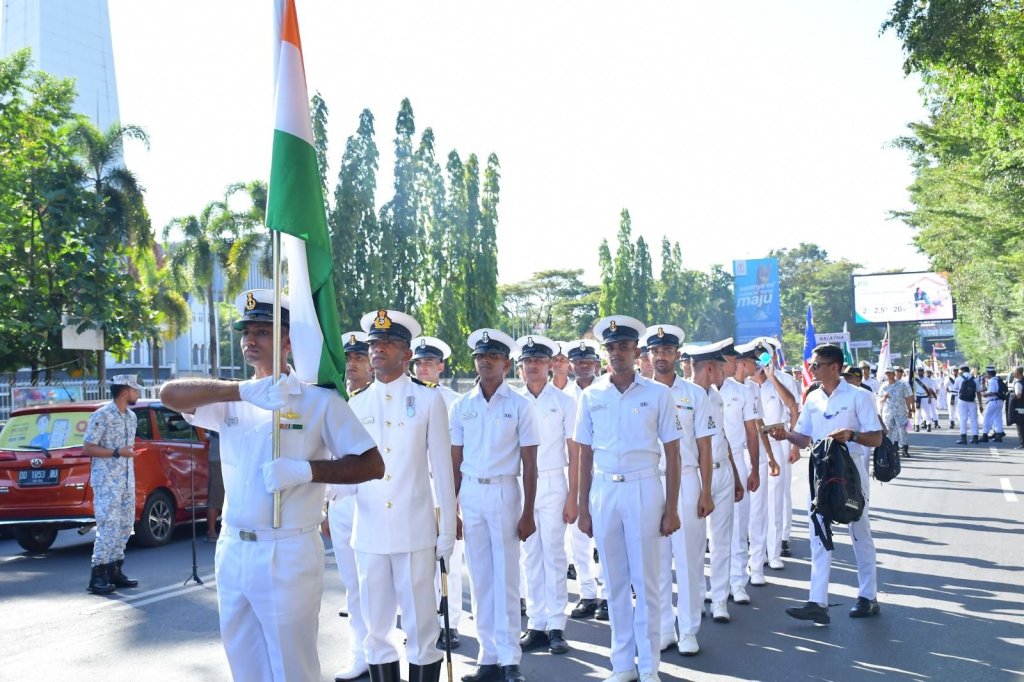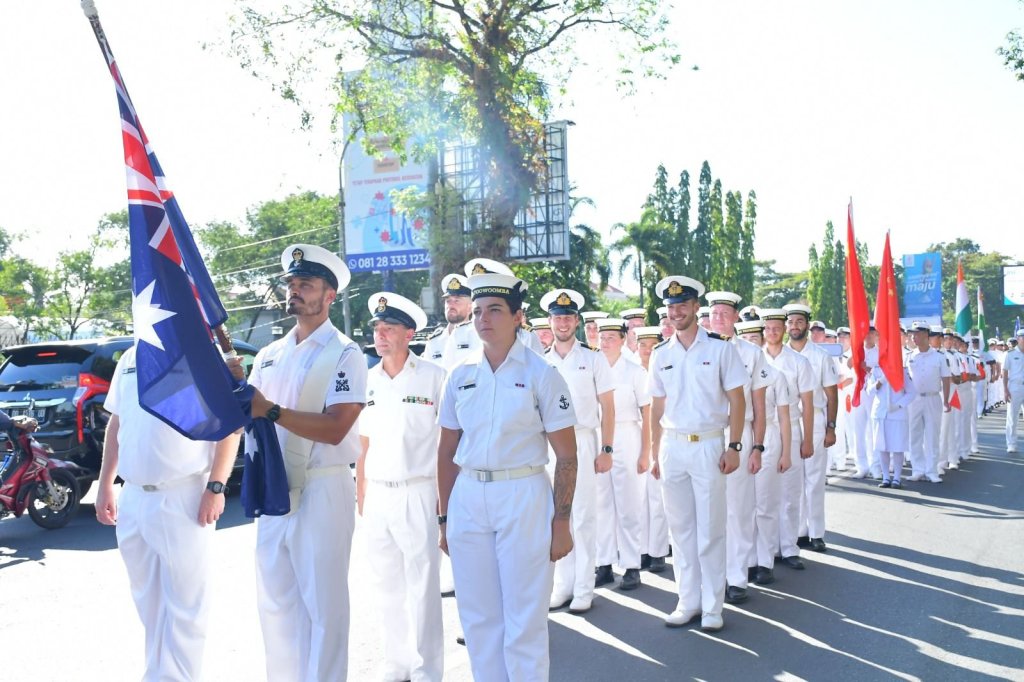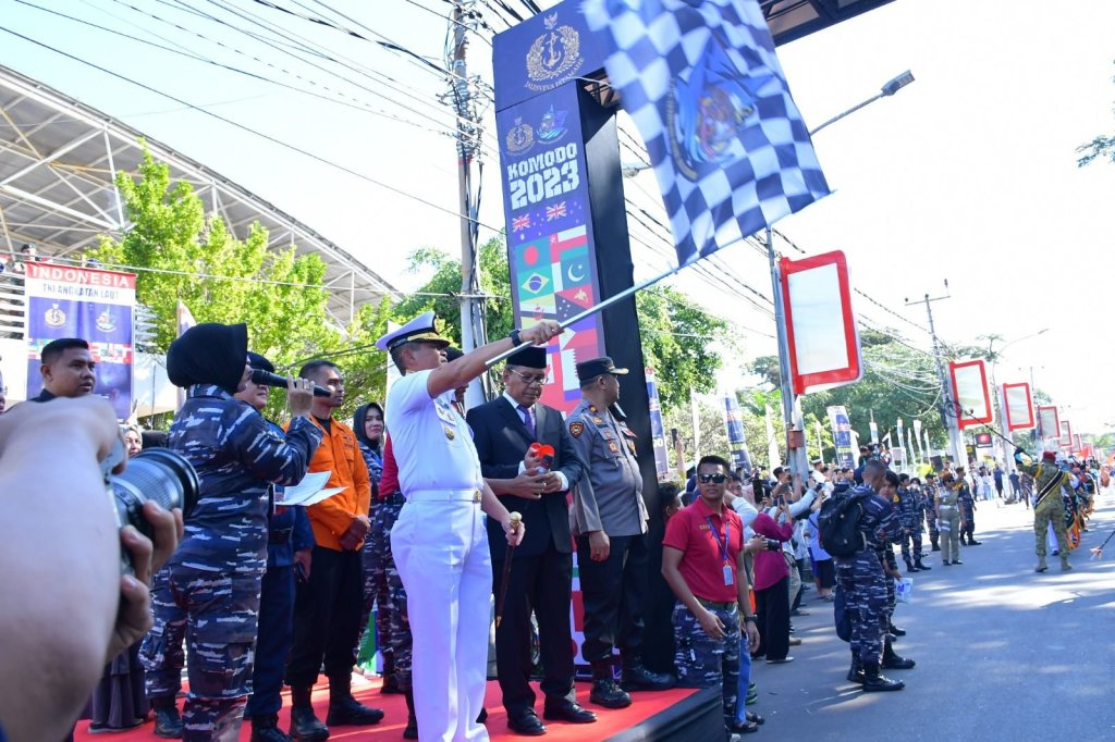 Kirab kota (city parade) para peserta Multilateral Naval Exercise Komodo (MNEK) Ke-4 Tahun 2023, memukau dan menjadi hiburan masyarakat Makassar. Kirab dimulai dari Lapangan Karebosi hingga Pantai Losari, Makassar, Selasa (6/6/2023).