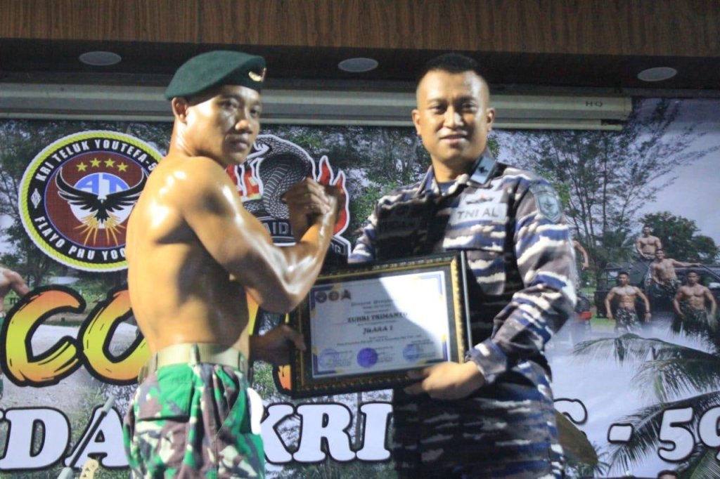 Kejuaraan Body Contest layaknya ajang binaraga internasional tersebut berlangsung di hanggar Hely KRI BAC-593 saat KRI BAC-593 dan KRI TYO-522 sandar di dermaga Timika dalam rangka melaksanakan penugasan operasi beberapa saat lalu.