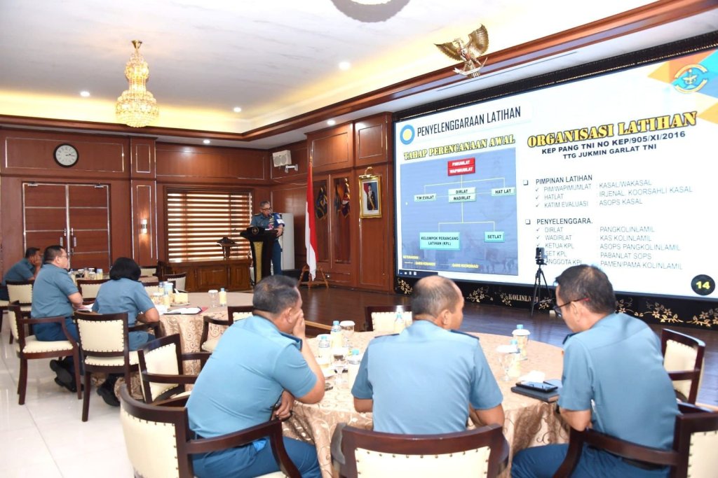 Bertempat di gedung Laut Nusantara, Mako Kolinlamil, Tanjung Priok, Jakarta Utara, Kamis (15/9/2023). Asisten Operasi Pangkolinlamil Kolonel Laut (P) Ronald Rarun berkesempatan untuk menyampaikan paparan Rencana Garis Besar Latihan Prosedur Search and Resque di hadapan Panglima Komando Lintas Laut Militer Laksda TNI Edwin, S.H., M.Han., M.H. dan Pejabat Utama serta Kasatker Kolinlamil. Kegiatan tersebut juga diikuti Perwira Satlinlamil 1 di Surabaya dan Satlinlamil 3 di Makassar melalui video conference.