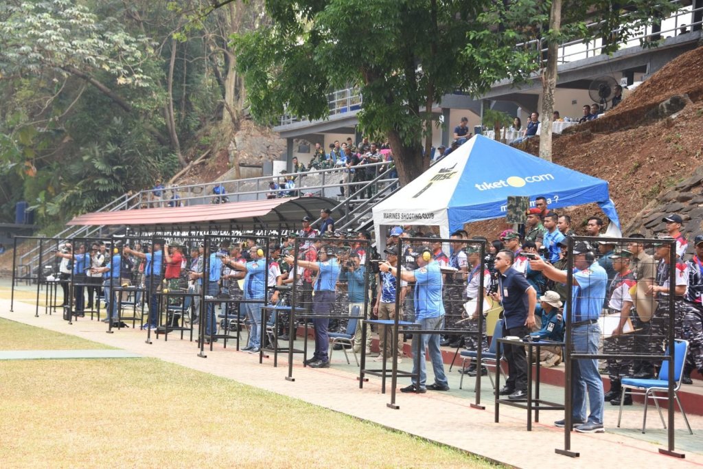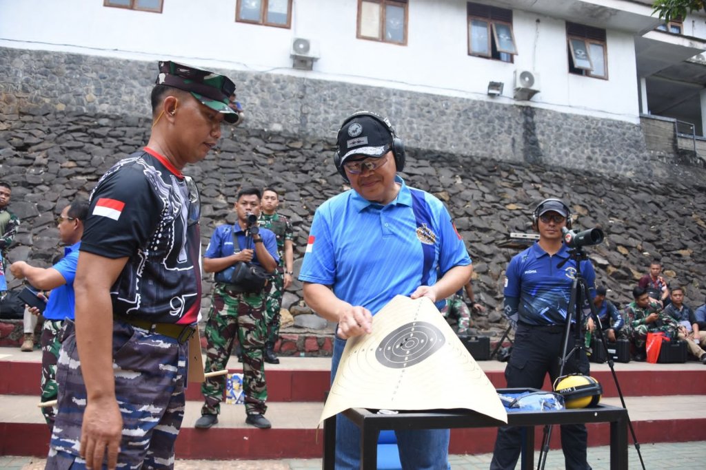 Panglima Komando Lintas Laut Militer Laksda TNI Edwin, S.H., M.Han., M.H. mengikuti ajang Lomba Tembak Kasal Cup tahun 2023 yang berlangsung di lapangan tembak Jusman Puger, Ksatrian Marinir Hartono, Cilandak, Jakarta Selatan, Jumat (13/10/2023).