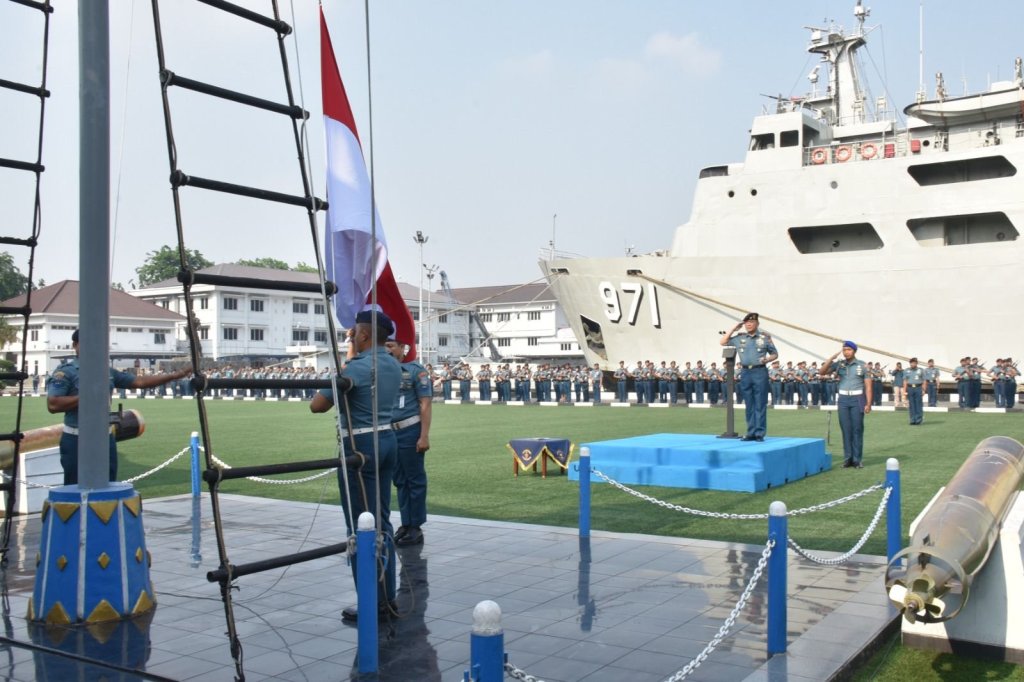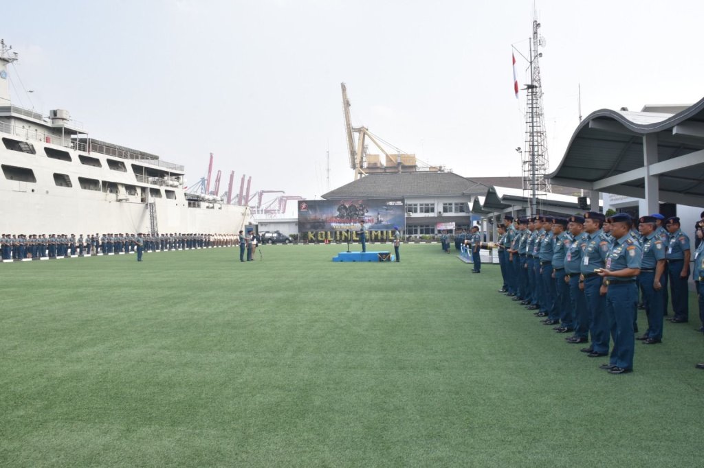 Panglima Komando Lintas Laut Militer Laksda TNI Edwin, S.H., M.Han., M.H. memimpin jalannya Upacara Bendera tanggal 17 yang secara rutin dilaksanakan dan diikuti seluruh prajurit beserta PNS Kolinlamil dengan mengambil tempat di Lapangan Moeljono Silam, Mako Kolinlamil, Tanjung Priok, Jakarta Utara, Selasa (17/10/2023).