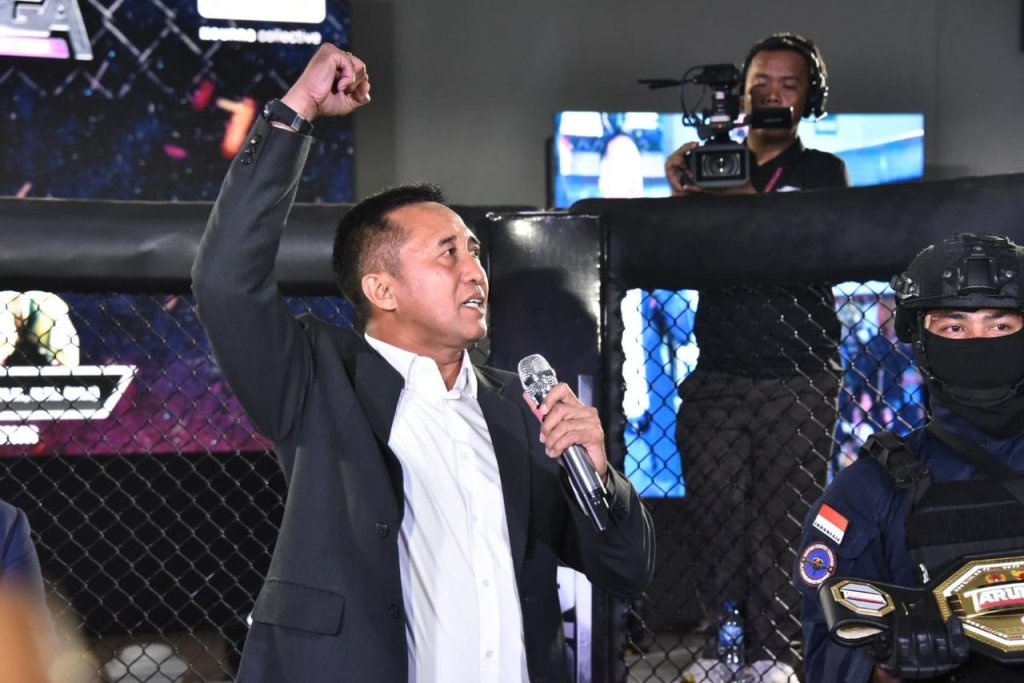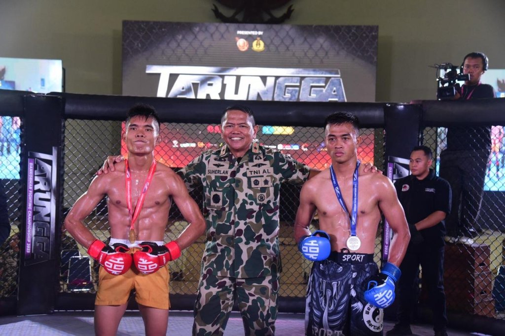 Peduli dengan pembinaan fisik dan kemampuan prajurit, Korps Marinir TNI Angkatan Laut (TNI AL) menggelar Dankormar Fighting Championship Tarungga Competition bertempat di Balai Prajurit Marinir Cilandak, Jakarta Selatan, Sabtu (4/11/2023).