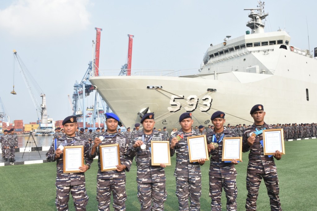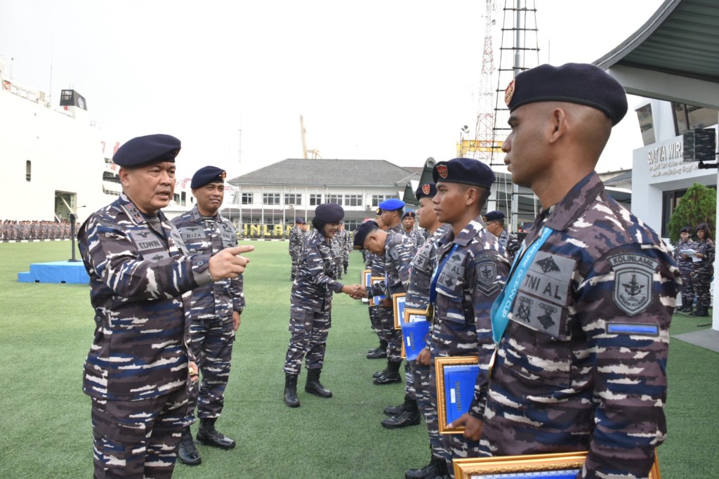 Dalam suatu apel khusus yang dilaksanakan pada hari ini, Rabu (8/11) di lapangan Moeljono Silam, Mako Kolinlamil, Tanjung Priok, Jakarta Utara. Panglima Komando Lintas Laut Militer Laksda TNI Edwin, S.H., M.Han., M.H. kembali memberikan reward (penghargaan) kepada sejumlah prajurit Kolinlamil yang berhasil menorehkan prestasi di beberapa ajang kejuaraan.