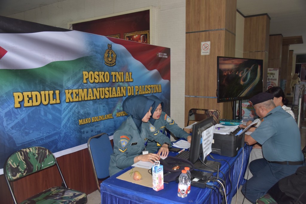 Melihat kondisi yang sangat memprihatikan tersebut Kepala Staf Angkatan Laut Dr. Muhammad Ali, S.E., M.M., M.Tr. Opsla telah menginstruksikan jajarannya untuk membuka Posko TNI AL guna menghimpun bantuan dari seluruh warga masyarakat yang peduli terhadap penderitaan rakyat Palestina. Posko Bantuan Peduli Palestina dibuka di Mako Koarmada II, Ujung, Surabaya dan Mako Kolinlamil, Tanjung Priok, Jakarta Utara. Sebagai leading sector pengumpulan bahan kontak ditunjuk Staf Potensi Maritim di kedua Kotama TNI AL tersebut.