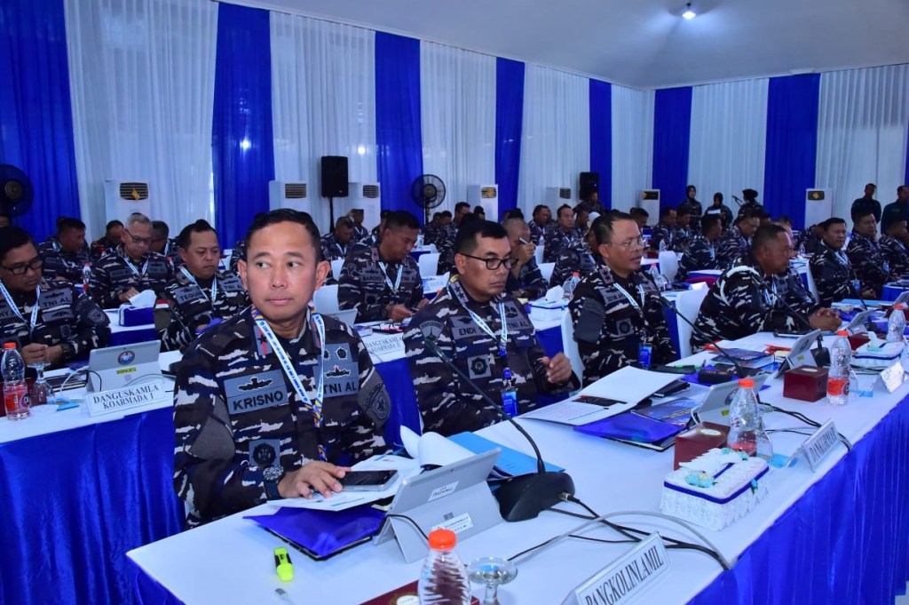 Bertempat di Bumi Marinir, Cilandak, Jakarta Selatan Panglima Komando Lintas Laut Militer Laksma TNI Hudiarto Krisno Utomo,PSC(J)., M.A., M.M.S., CHRMP mengikuti kegiatan Rapat Koordinasi Perencanaan dan Keuangan (Renaku) II dan Apel Komandan Satuan (AKS) TNI AL tahun 2023 yang dipimpin langsung oleh Kepala Staf Angkatan Laut Laksamana TNI Dr. Muhammad Ali, S.E., M.M M.Tr.Opsla secara daring dan luring, Selasa (21/11/2023).