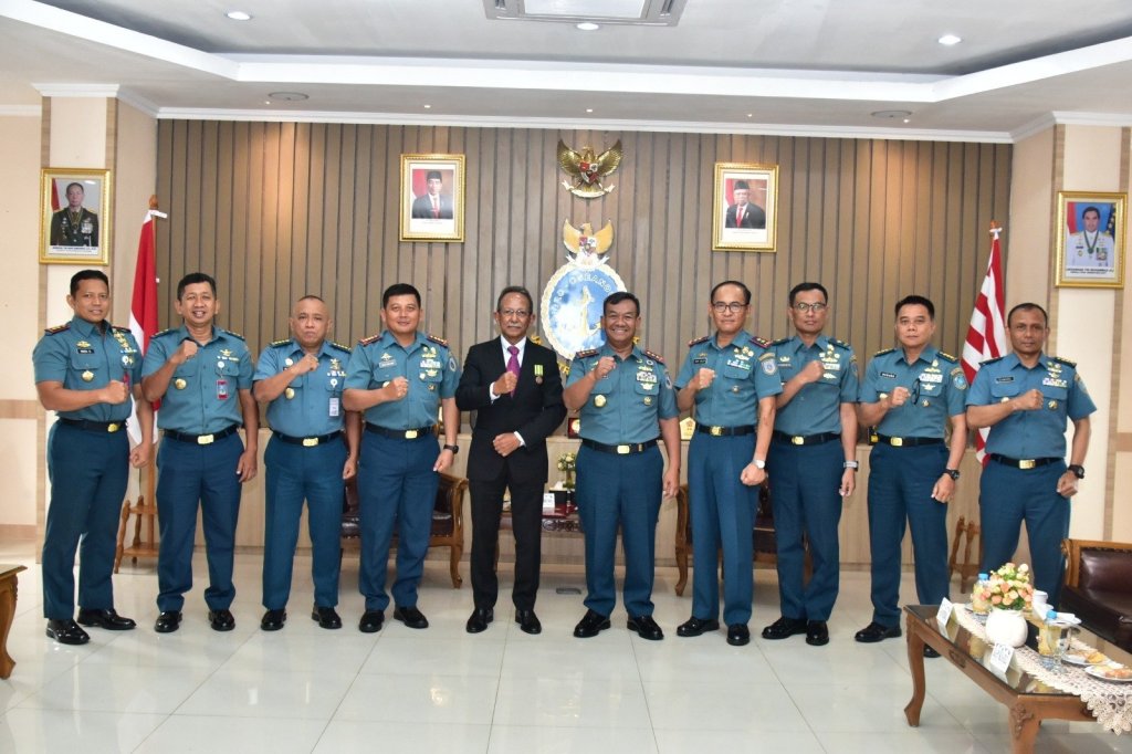 Komandan Pusat Hidro-Oseanografi TNI Angkatan Laut (Danpushidrosal) Laksamana Madya TNI Budi Purwanto menyematkan tanda kehormatan Satyalancana Dwidya Sistha kepada Ir. Sobri Ahmad Syawie, M.M.