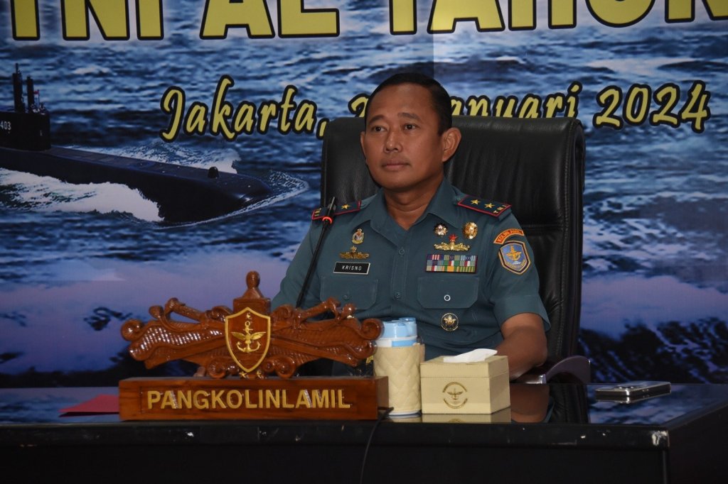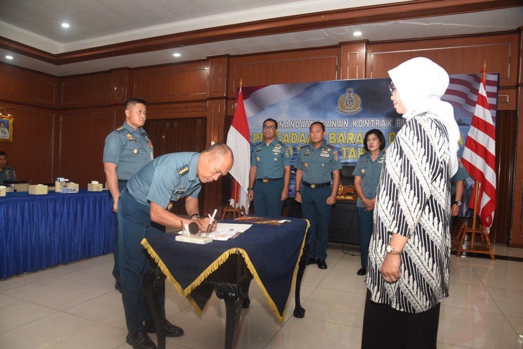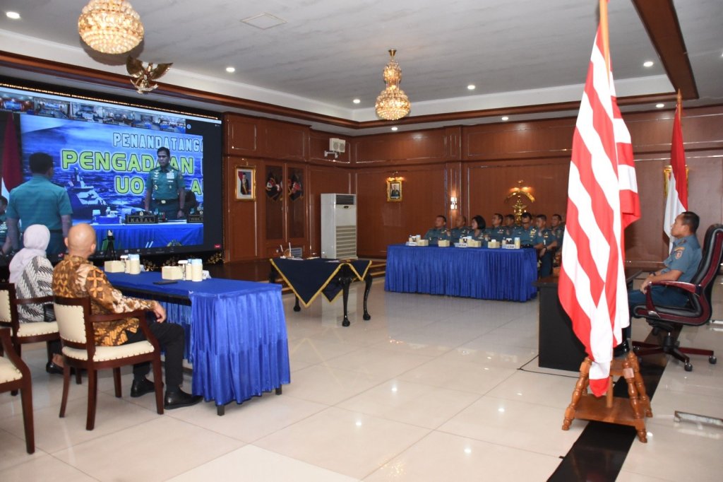 Panglima Kolinlamil Laksda TNI Hudiarto Krisno Utomo, PSC(J) M.A., M.M.S., CHRMP bersama Kepala Staf Kolinlamil dan sejumlah pejabat Kolinlamil bertempat di Gedung Laut Nusantara, Mako Kolinlamil, Jakarta Utara menyaksikan penandatangan kontrak melalui video conference yang dilaksanakan secara serentak oleh 25 satuan kerja di lingkungan TNI Angkatan Laut.