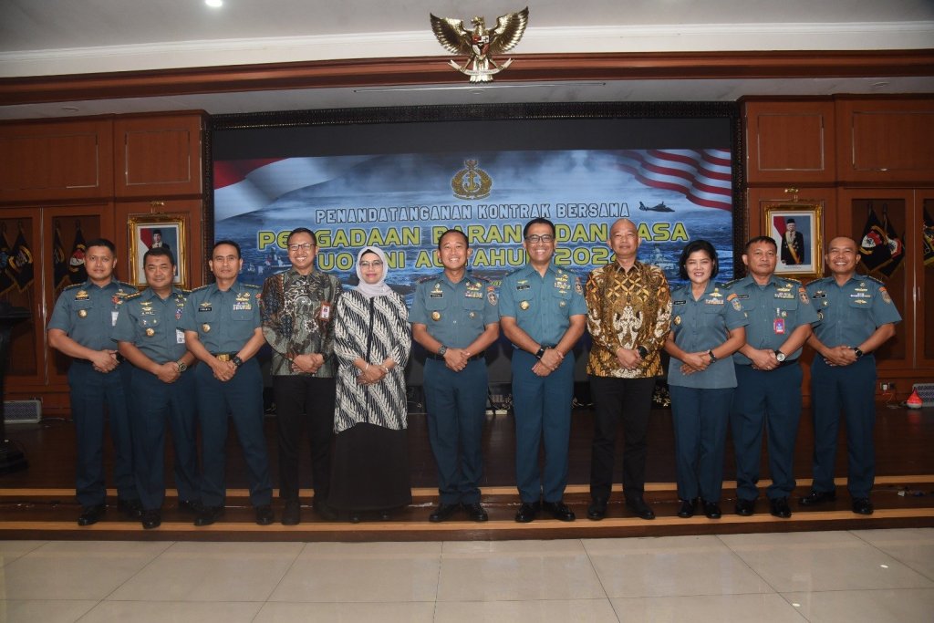 Komando Lintas Laut Militer mengikuti Penandatanganan Kontrak Bersama Pengadaan Barang dan Jasa UO TNI Angkatan Laut TA 2024 antara PPK Satuan Kerja (Satker) di lingkungan TNI AL dengan sejumlah mitra penyedia barang dan jasa yang dipimpin oleh Kepala Staf TNI Angkatan Laut (Kasal) Laksamana TNI Dr. Muhammad Ali bertempat di Auditorium Denma Mabesal, Cilangkap, Jakarta Timur, Senin (22/1/2024)..