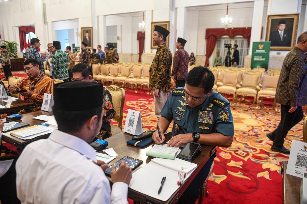 Dalam rangka mendukung pengelolaan zakat di tanah air, Kepala Staf Angkatan Laut (Kasal) Laksamana TNI Dr. Muhammad Ali menghadiri penyerahan zakat oleh Presiden RI Joko Widodo kepada Badan Amil Zakat Nasional (BAZNAZ) di Istana Negara, Jakarta Pusat, Rabu (13/3/2024).