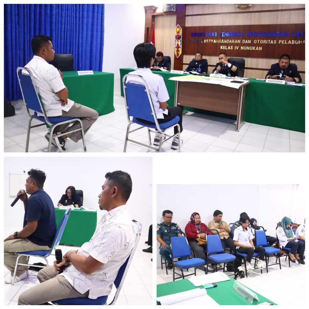 Kementerian Perhubungan RI melalui Mahkamah Pelayaran menggelar persidangan pertama kasus perkara kecelakaan Laut (Laka Laut) bertempat di ruang rapat Kantor Kesyahbandaran dan Otoritas Pelabuhan (KSOP) Kelas IV Nunukan pada Rabu (13/3/2024). Atas terjadinya Kecelakaan Laut (Laka Laut) tenggelamnya Kapal LCT Rimba Raya XV. GT 143 Bendera Indonesia di perairan Sungai Seimanggaris Kabupaten Nunukan, Kalimantan Utara pada tanggal 3 November 2023 yang lalu.