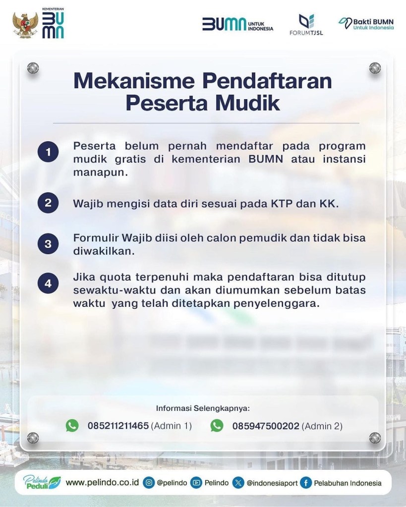 Patrick mengharapakan para calon pemudik yang ingin memanfaatkan kuota gratis ini agar segera mendaftarkan diri melalui link yang disebar di media sosial SPJM, antara lain di Instagram SPJM @pelindomaritim.