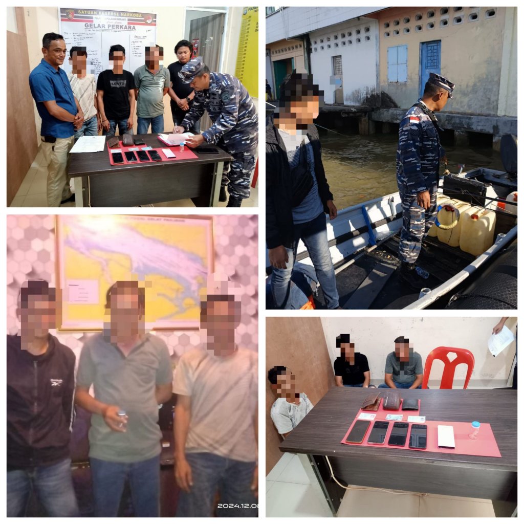 Adapun barang bukti yang diamankan adalah satu unit Speed Boat 40 PK yang saat ini diamankan di Posal Selatpanjang, 1 bong alat hisap Sabu, 4 unit HP, 1 Powerbank, 3 buah dompet, uang Rp.1.317.000, 3 buah KTP, serta 1 bilah Badik kecil.