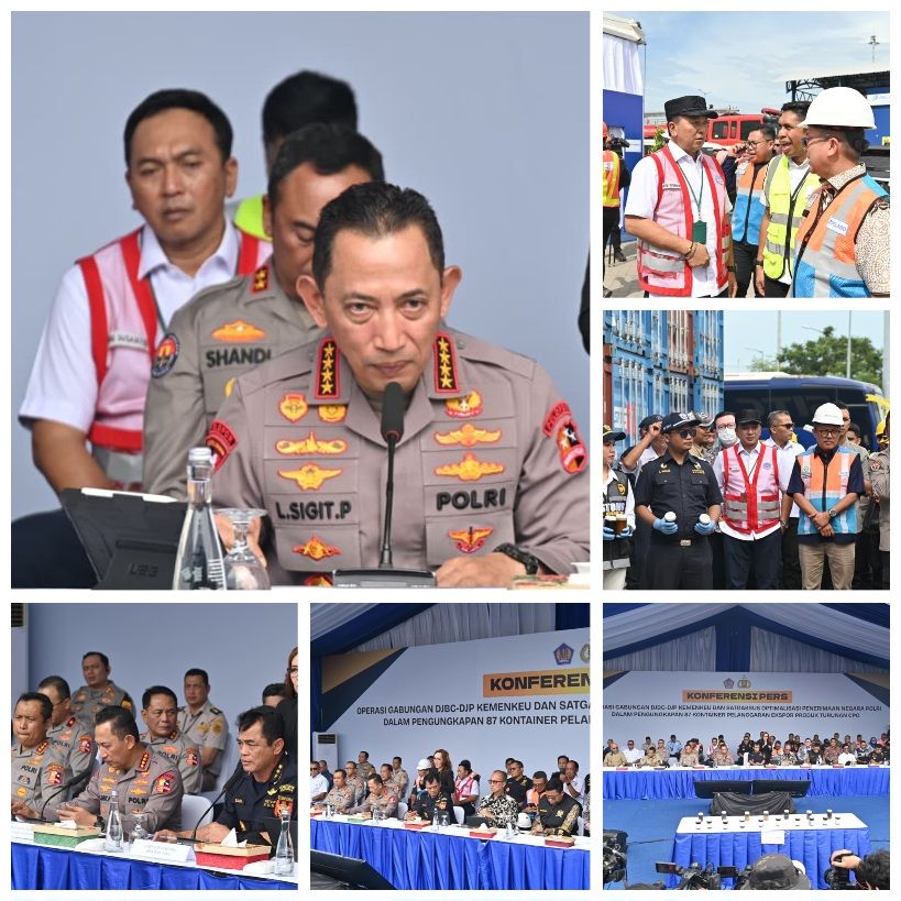 Kepala Kantor Kesyahbandaran dan Otoritas Pelabuhan (KSOP) Utama Tanjung Priok Capt.Heru Susanto, M.M, mengahadiri acara Konfresi Pers yang diselenggarakan Kementerian Keuangan bersama Satuan Tugas Khusus (Satgassus) Optimalisasi Penerimaan Negara Polri, bertempat di Lapangan Penumpukan PT Multi Terminal Indonesia, Common Gate NPCT1 Pelabuhan Tanjung Priok, Kamis (6/11/2025) kemarin.