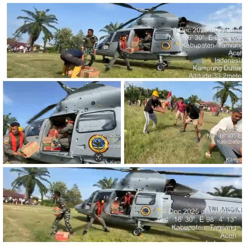 Helikopter TNI AL berhasil menyelesaikan dua sorti operasi dukungan logistik kemanusiaan di Kuala Simpang dan Kampung Durian Aceh Tamiang. Operasi ini merupakan bagian dari dukungan penanggulangan bencana banjir dan tanah longsor, di sejumlah wilayah Sumatera.