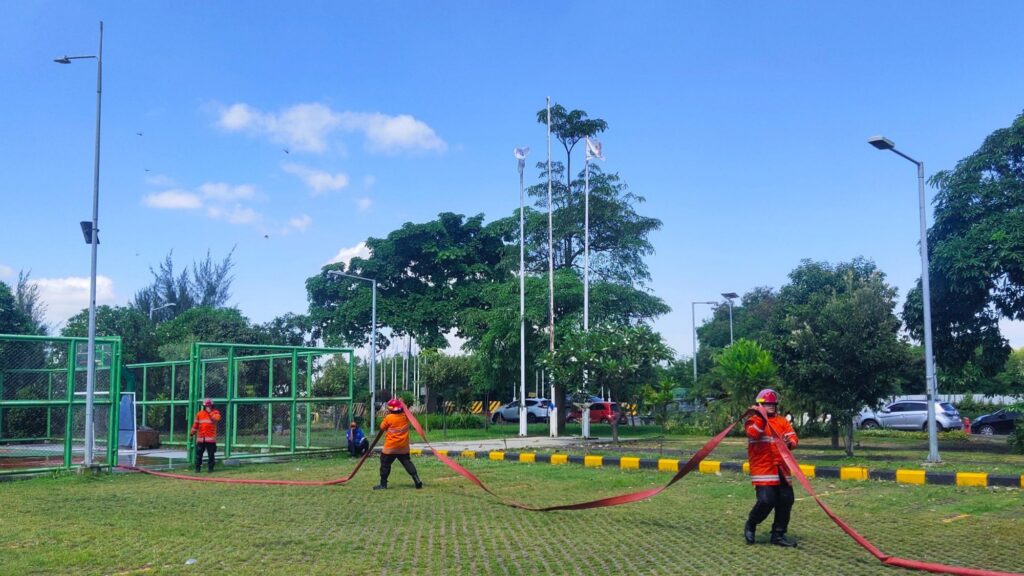 Kegiatan lomba dilaksanakan di area operasional PT Terminal Teluk Lamong dengan skenario yang menyerupai kondisi nyata di lingkungan pelabuhan, sehingga peserta dapat merasakan langsung penerapan prosedur emergency response sesuai dengan potensi risiko operasional terminal.